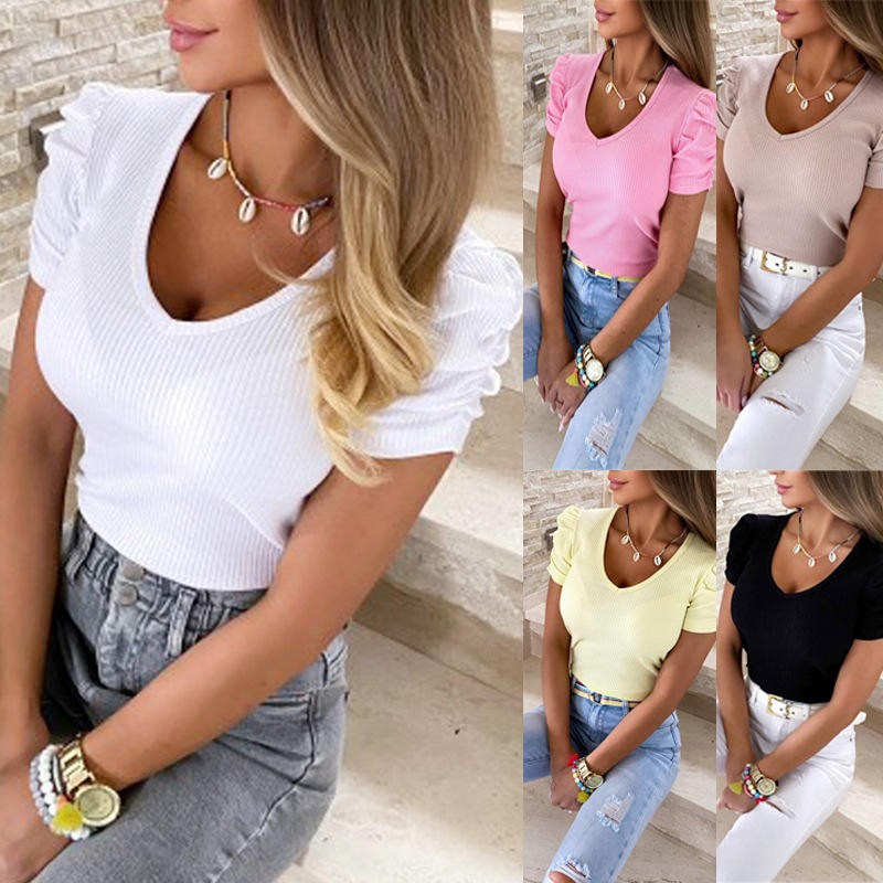 Bulk Blank Women Cotton Apparel Ladies Soft Cloth T-Shirts Tops V Neck Woman Lady T Shirt For Women