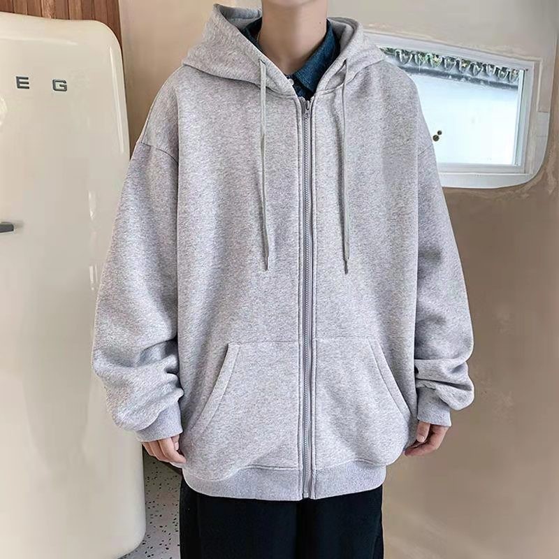 Pure Color Sports Hoodie Long Sleeve Loose Plus Size Men's and Women's Casual Zip Jacket