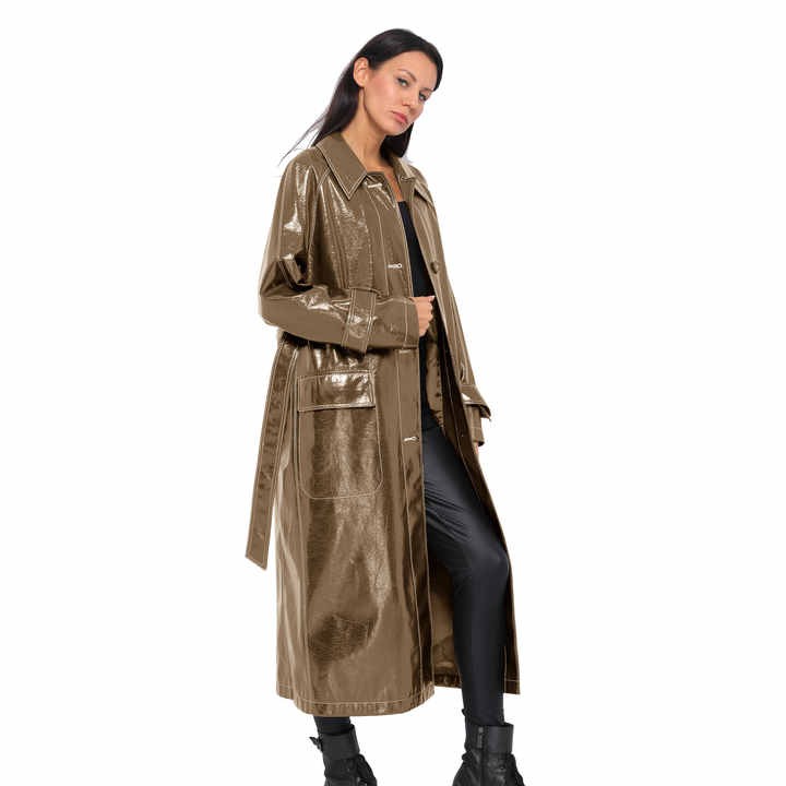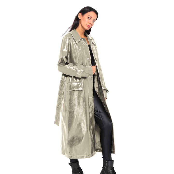 Wine red Trench Women's Slim Motorcycle Pu Leather Coat long slim with belt women's leather trench coats