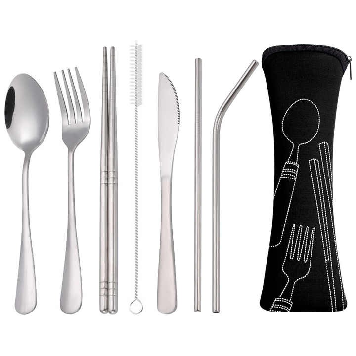 Stainless Steel Reusable Cutlery Office Utensil Metal Straw Portable Travel Cutlery Set with Case